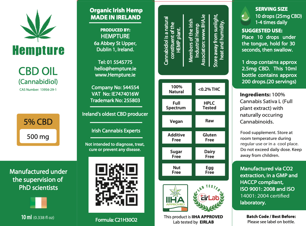 Hempture CBD oil is made from organically grown cannabis plants. Our 100% natural RAW CBD oil contains the full-spectrum of Cannabinoids. Hempture CBD oil and its packaging is produced in Ireland. Our crops are grown under strict government licences within the EU.