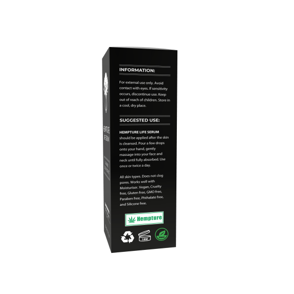 HEMPTURE LIFE SERUM should be applied after the skin is cleansed. Pour a few drops onto your hand, gently massage into your face and neck until fully absorbed. Use once or twice a day. All skin types. Does not clog pores. Works well with Moisturiser.