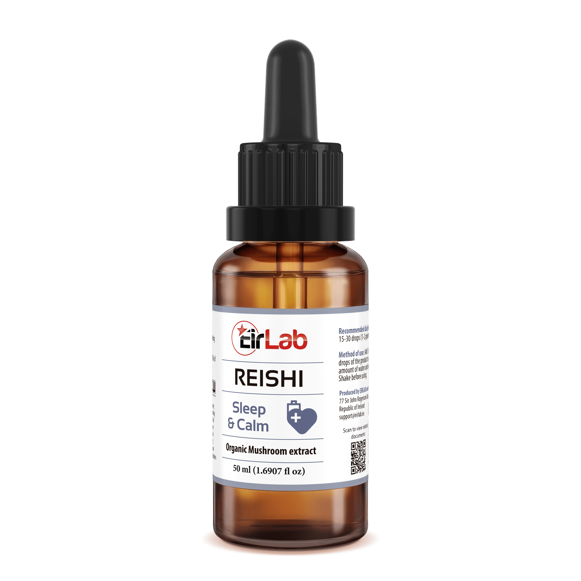 EIRLAB Reishi mushroom tincture is produced in Ireland using only organic ingredients. 100% Natural.